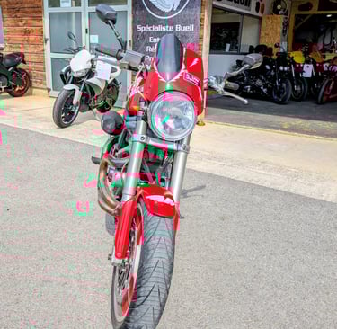 Petits pet de vernis sur la tête de fourche et bout de levier de frein cassé.
